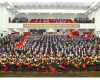 조선로동당 제9차대회 결정관철을 위한 청년전위들의 궐기대회 진행